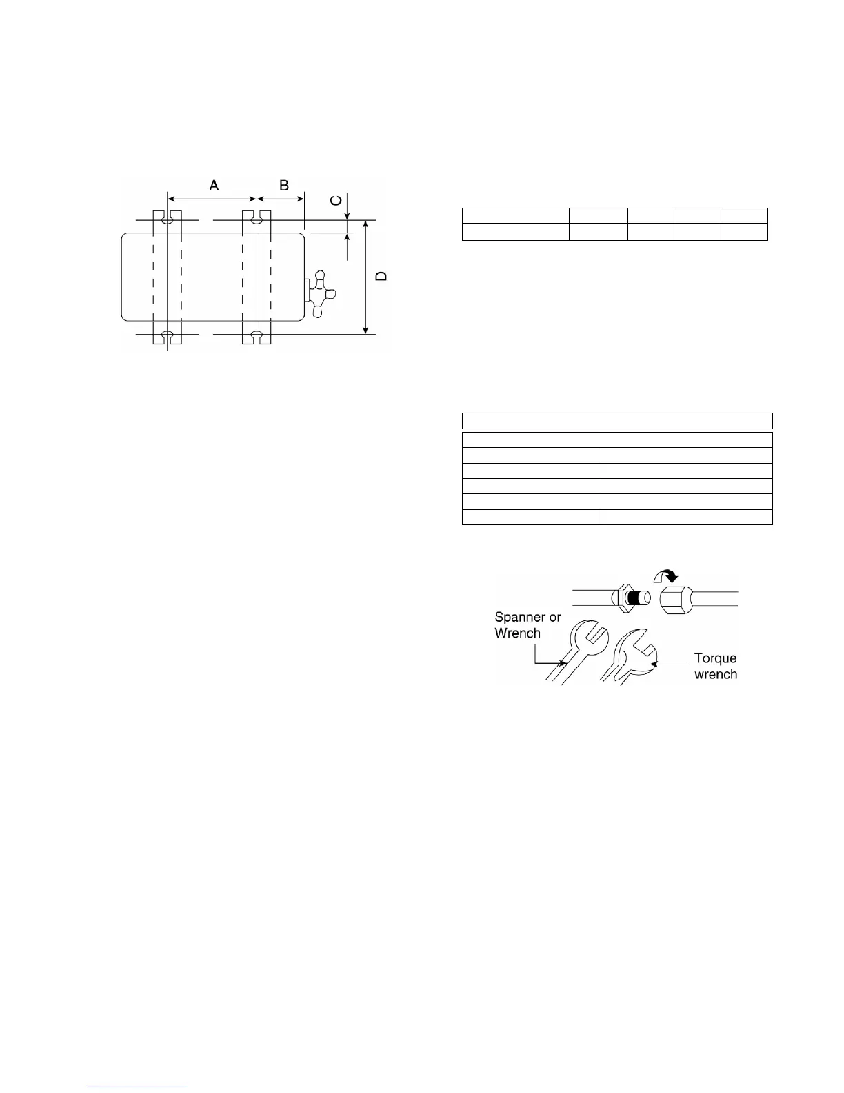specified torque as stated in the table.