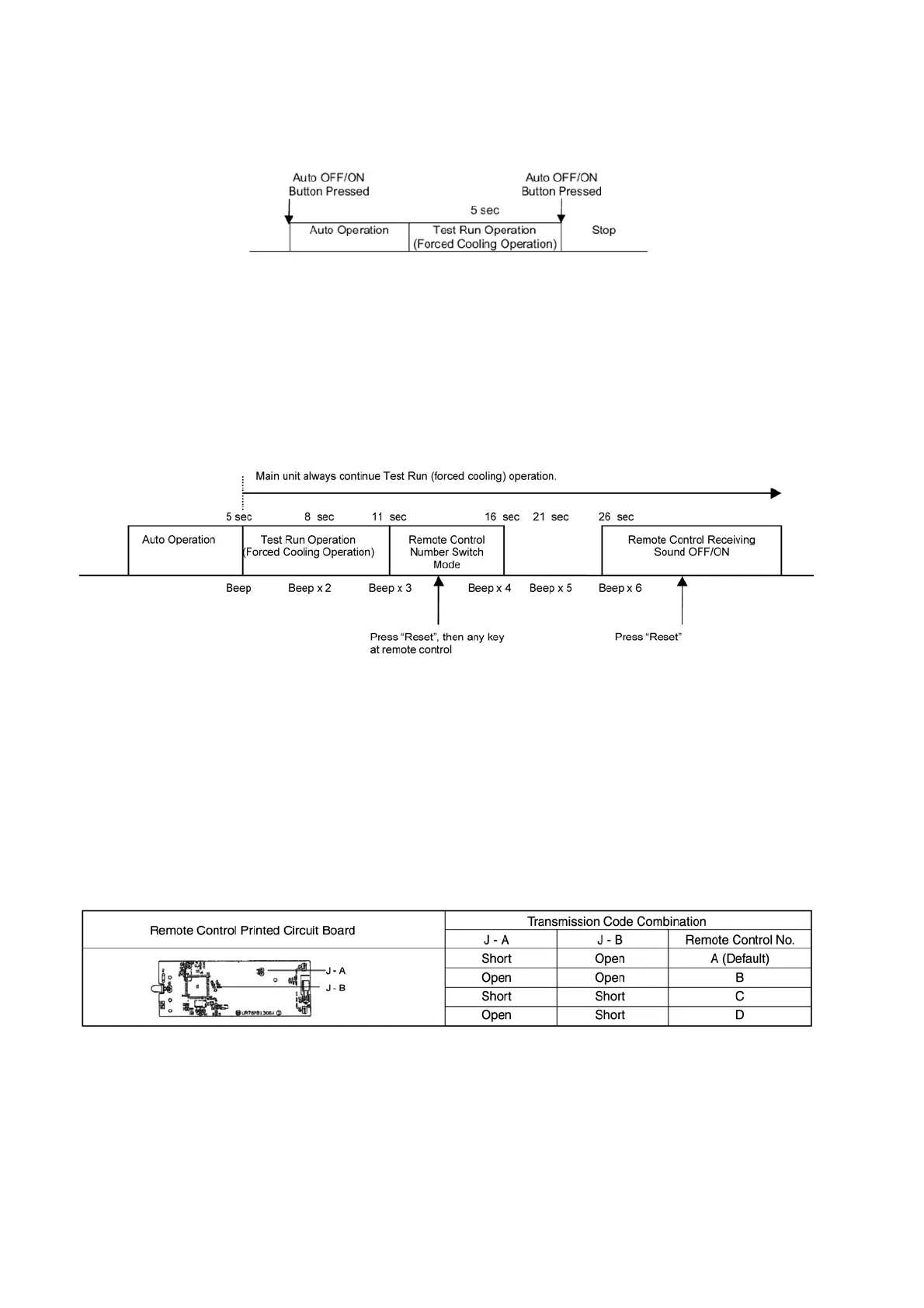 To change remote control transmission code, short or open jumpers at the remote control printed circuit board.