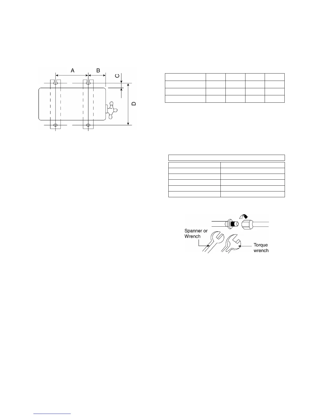 specified torque as stated in the table.