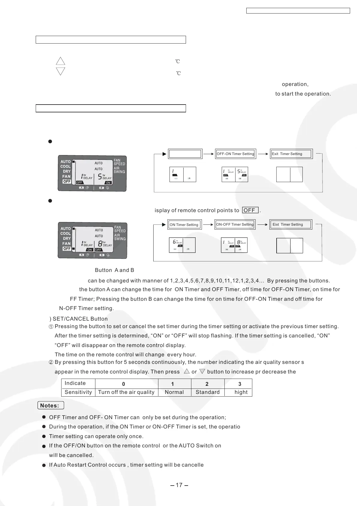 OFF Timer and OFF- ON Timer can only be set during the operation;