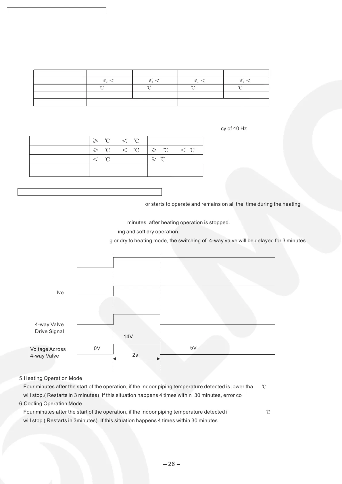 2.The 4-way valve remains on for less than 3 minutes after heating operation is stopped.