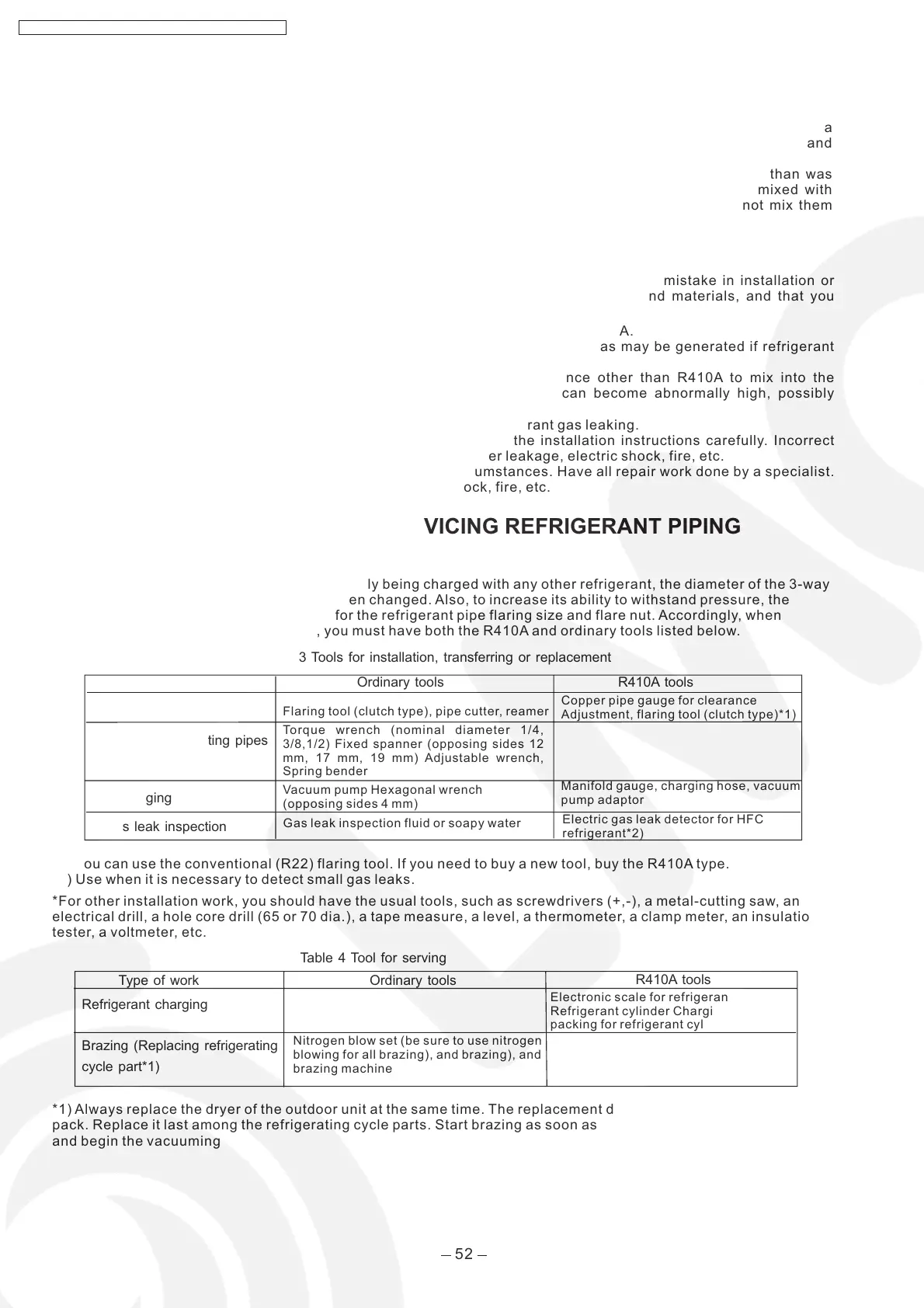 servicing could result in a major accident. It is essential that you use R410a tools and materials, and that you