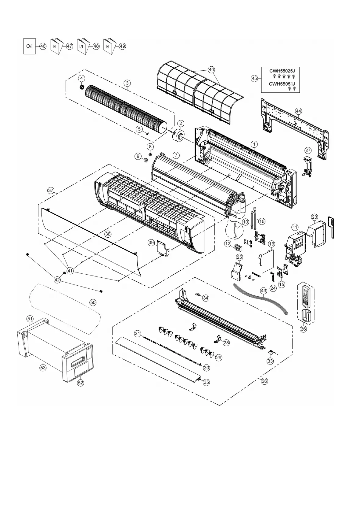 The above exploded view is for the purpose of parts disassembly and replacement.