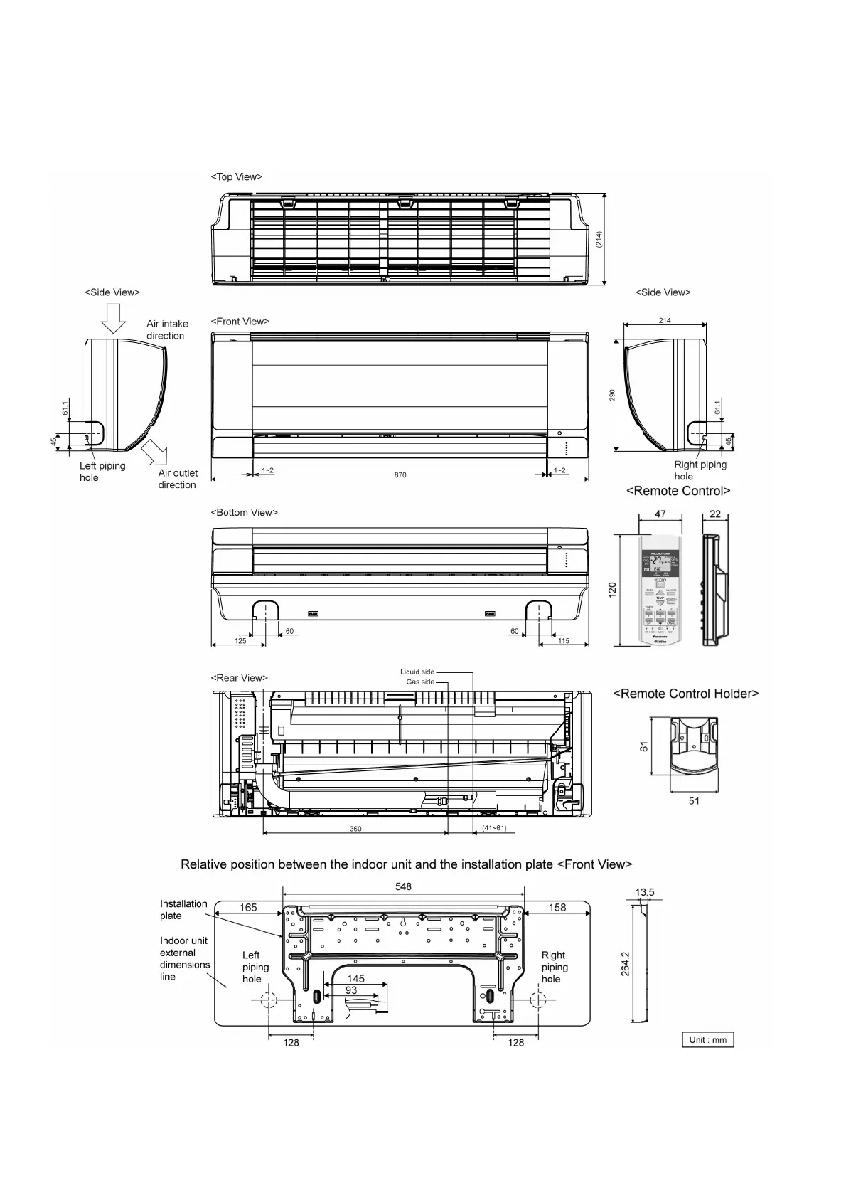 Panasonic CU-PS12NKH - Dimensions; Indoor Unit Dimensions