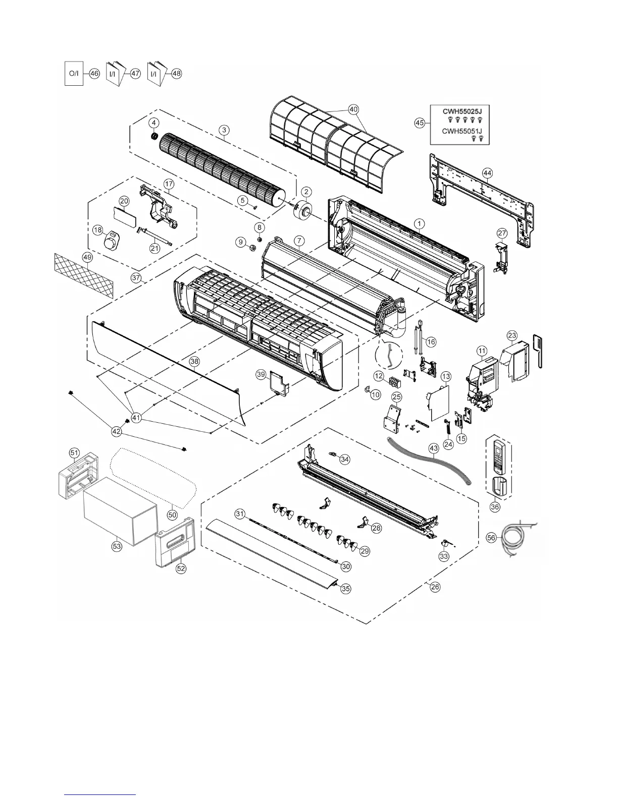 The above exploded view is for the purpose of parts disassembly and replacement.