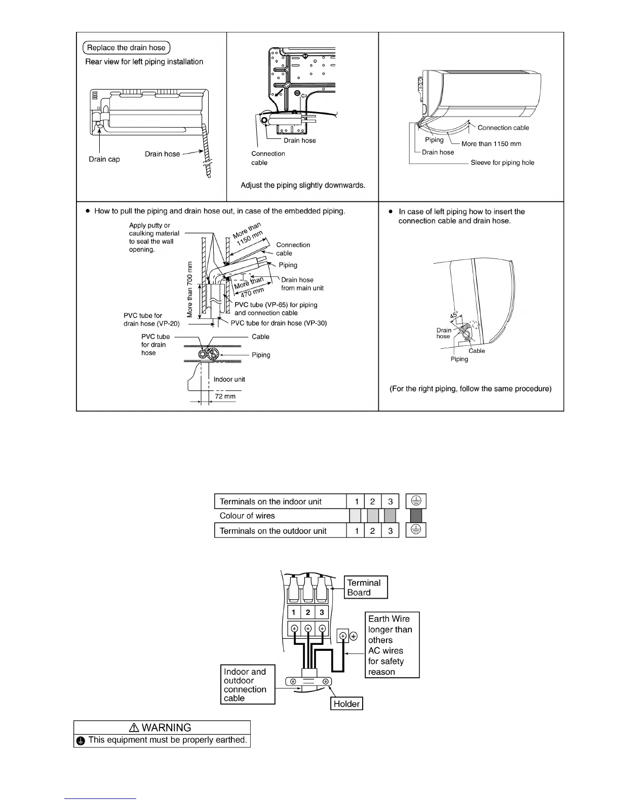 2 Connection cable between indoor unit and outdoor unit shall be approved polychloroprene sheathed 4 x