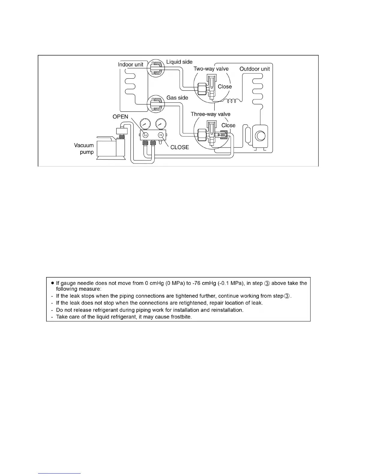 Note: BE SURE TO TAKE THIS PROCEDURE IN ORDER TO AVOID REFRIGERENT GAS LEAKAGE.