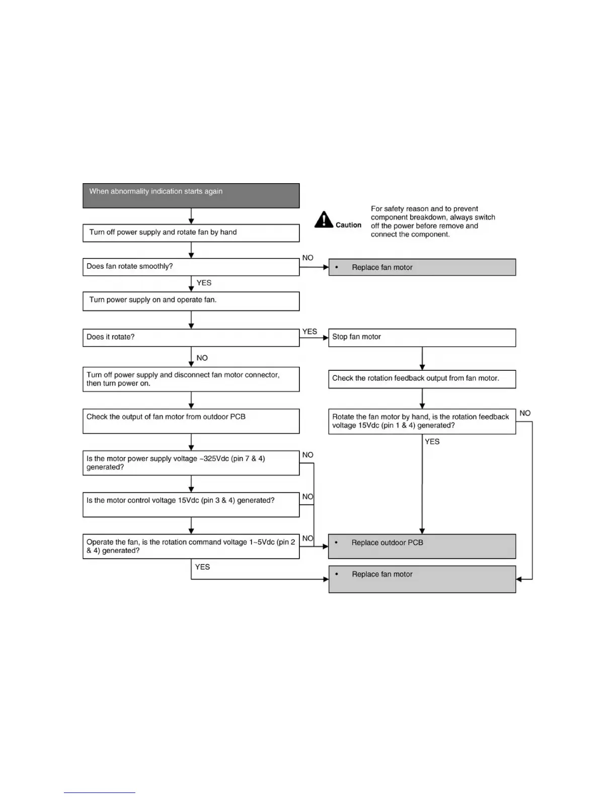 • Operation stops due to short circuit inside the fan motor winding.