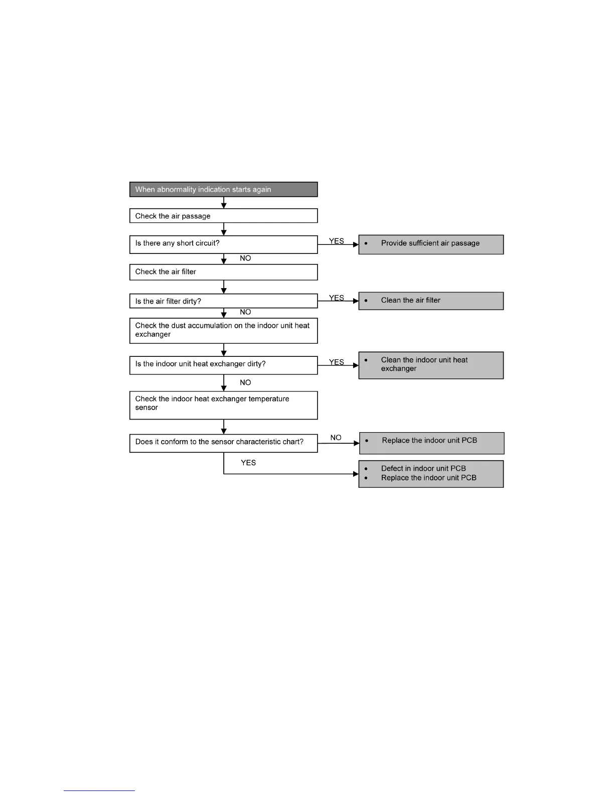• Detection error due to faulty indoor unit PCB