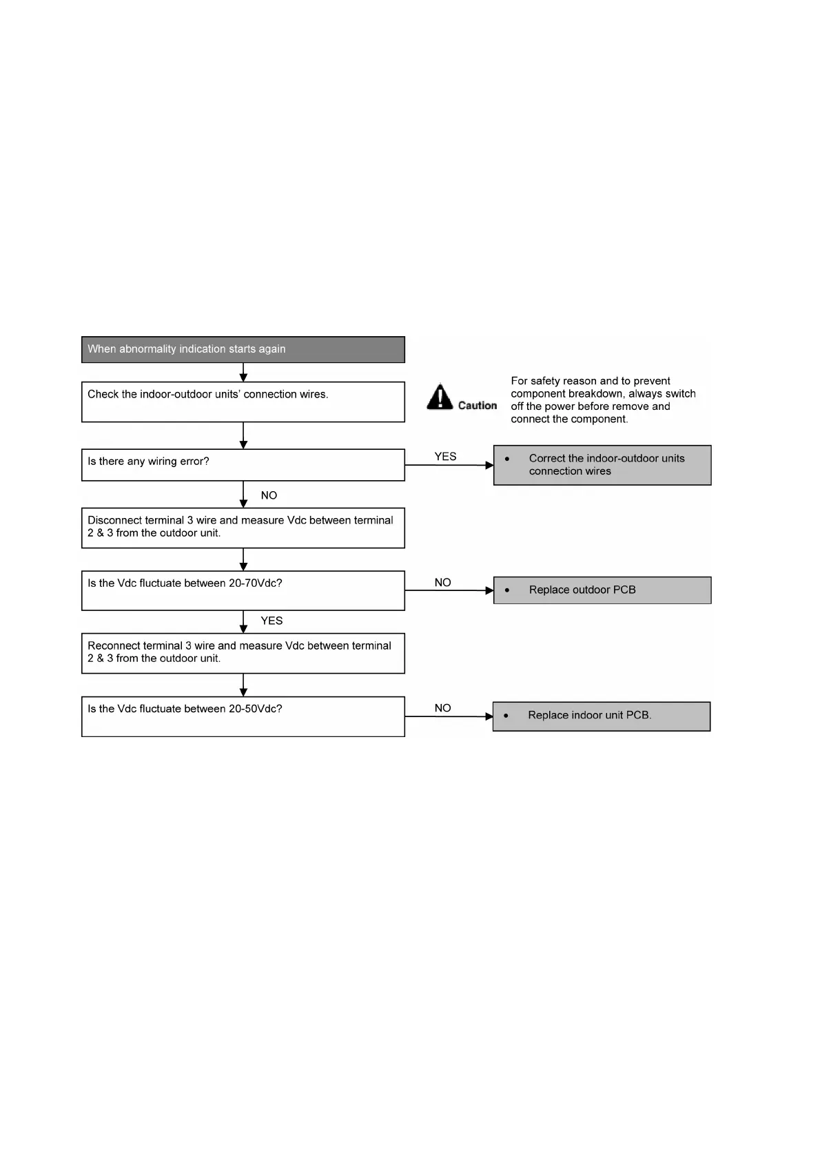 Indoor unit-outdoor unit signal transmission error due to wrong wiring.
