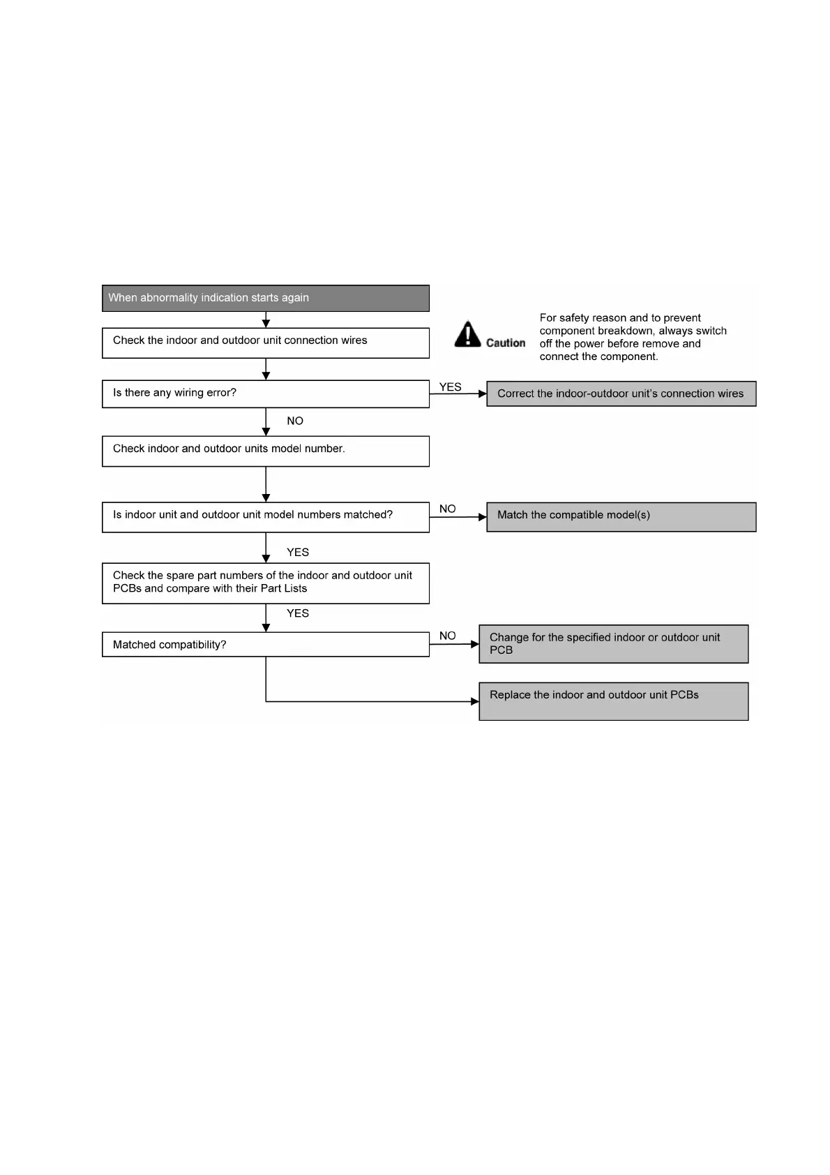 Wrong indoor unit or outdoor unit PCBs mounted.