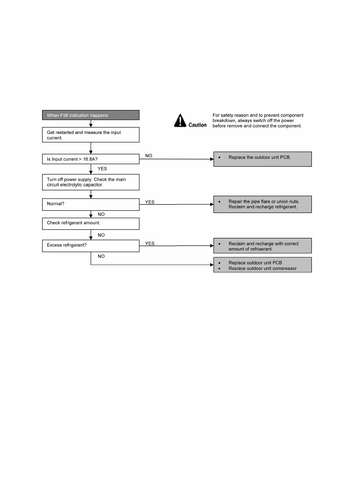 Over-current due to excessive refrigerant.