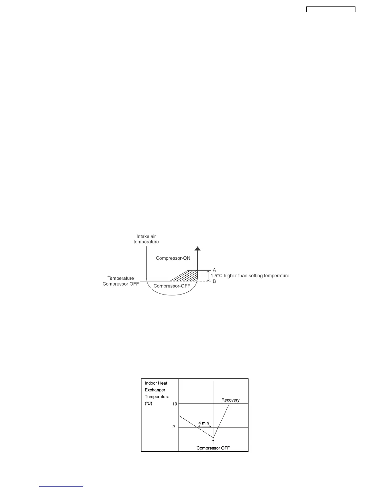If the temperature of the indoor heat exchanger falls below 2°C continuously for 4 minutes or more, the compressor turns off.
