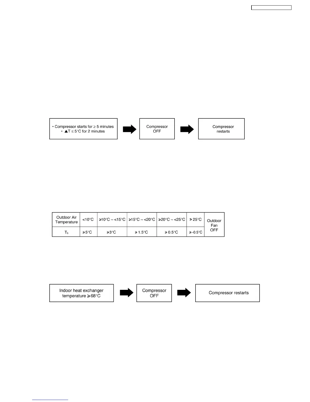 If the temperature of the Outdoor Heat Exchanger less than -3°C, Outdoor Fan is ON. The Outdoor Fan stop, when Outdoor