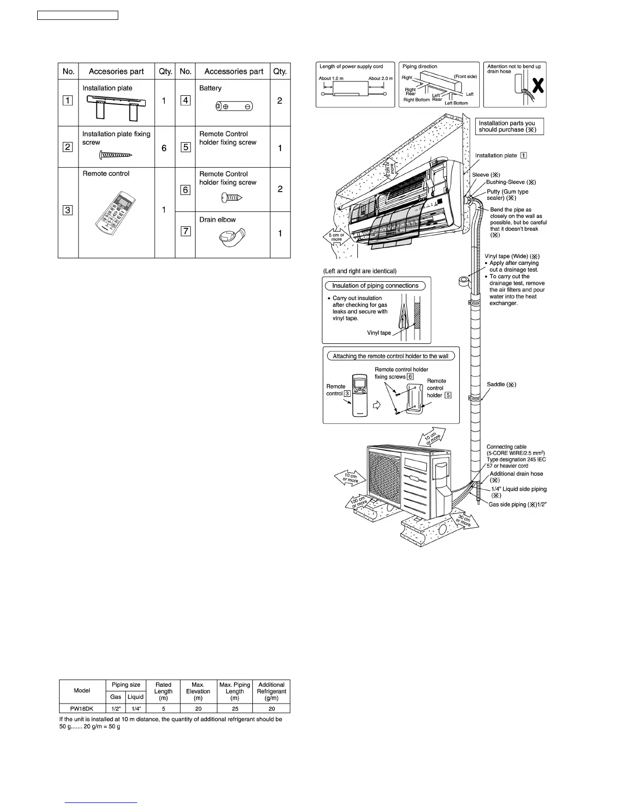 If piping length is over 7.5m, additional refrigerant