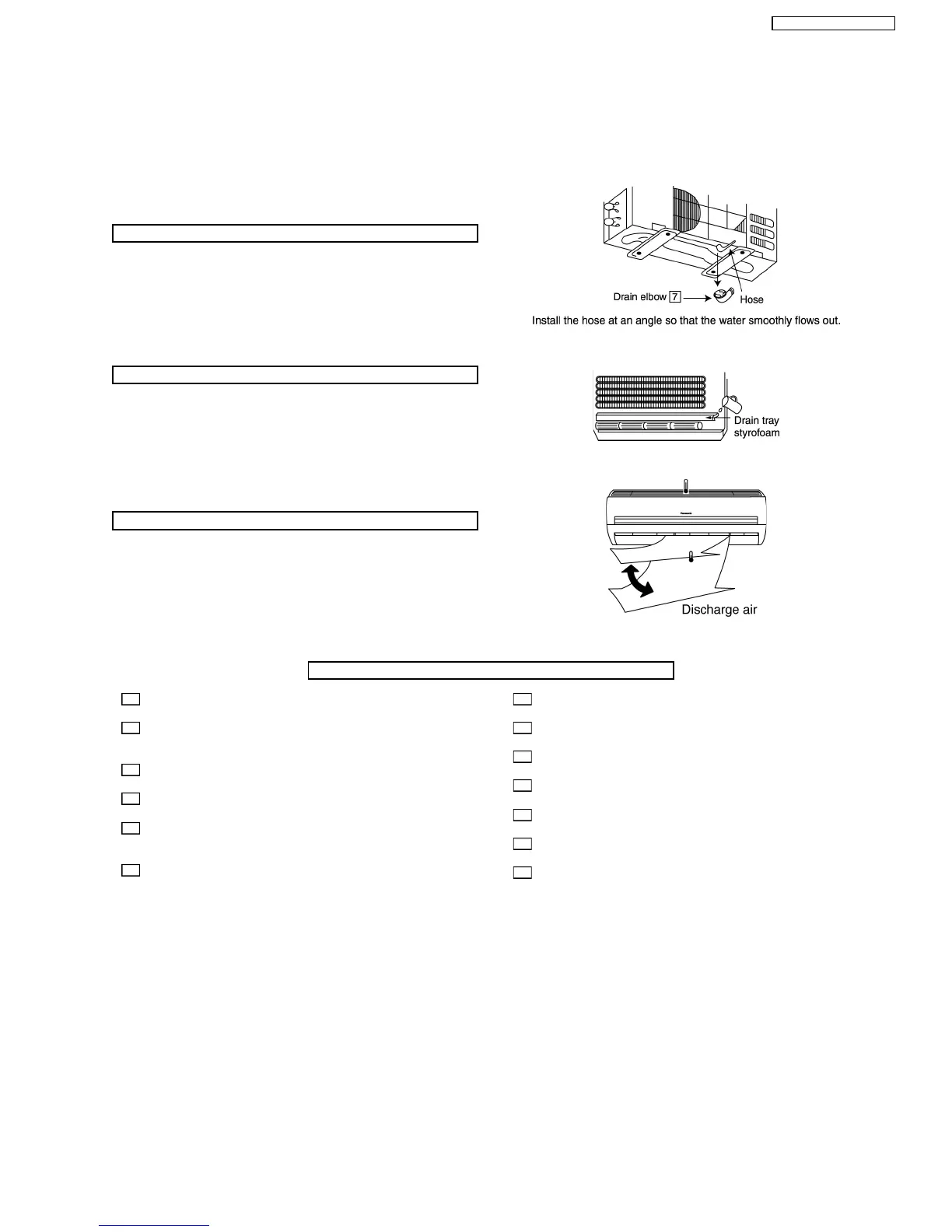 2. If drain hose or connecting piping is in the room (where dew may form), please increase the insulation by using POLY-E FOAM