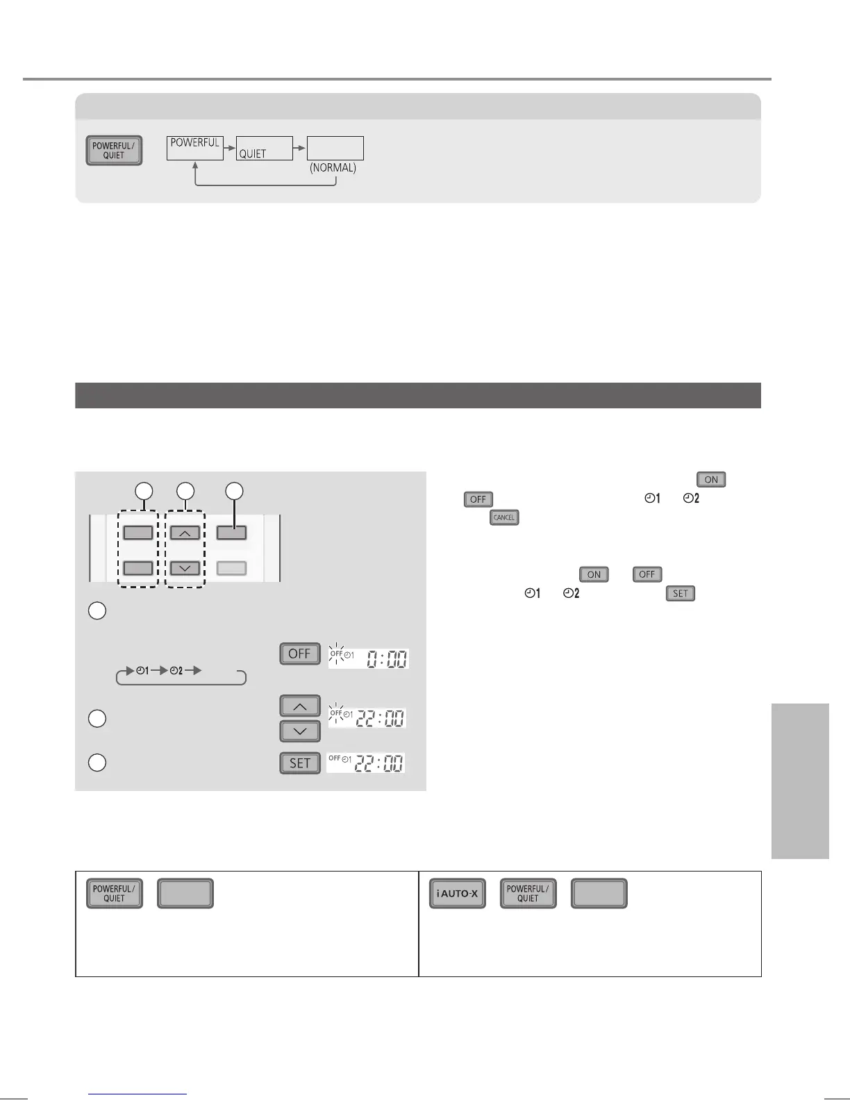 2 sets of ON and OFF timers are available to turn ON or OFF the unit at different preset