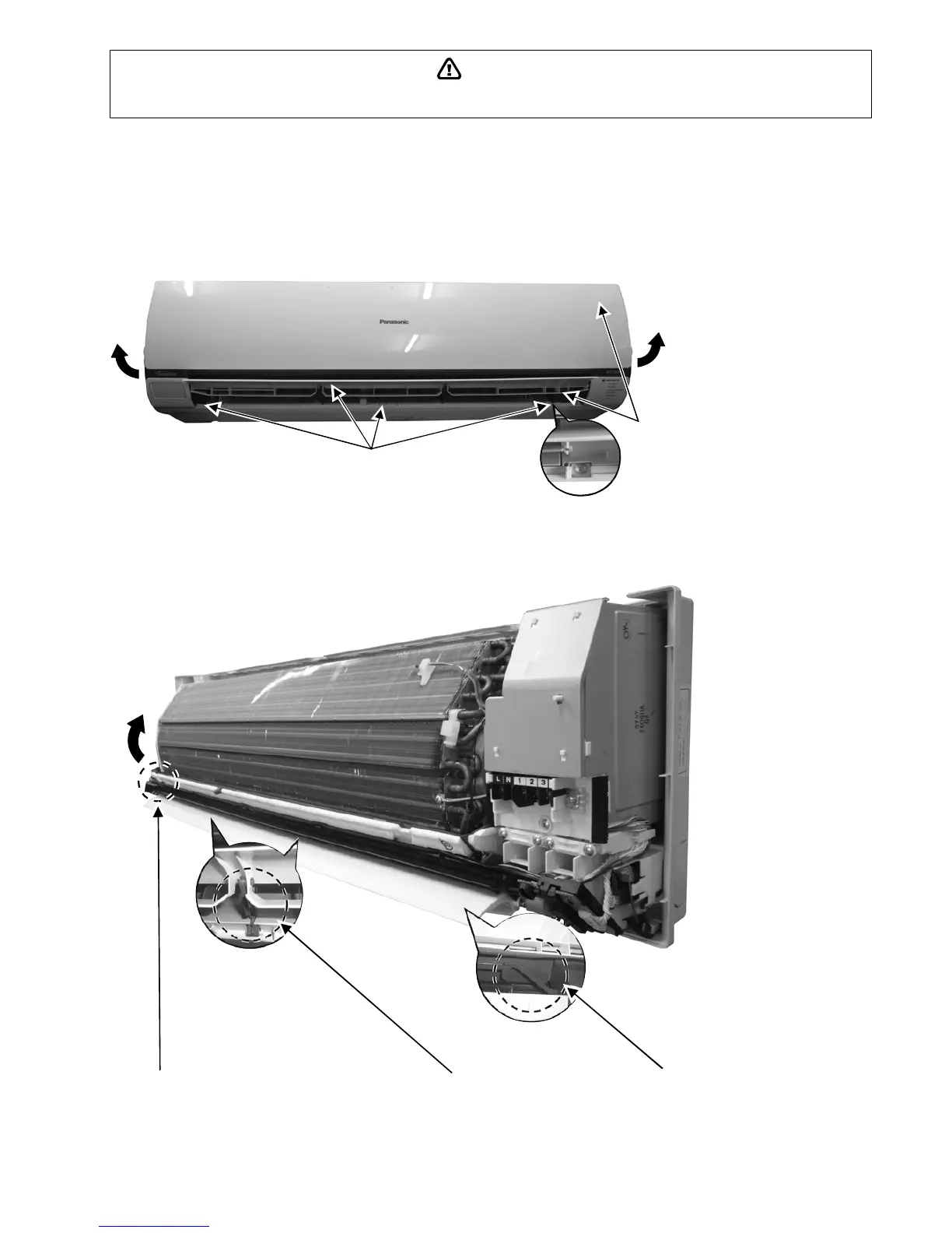 High Voltage is generated in the electrical parts area by the capacitor. Ensure that the capacitor has discharged sufficiently before proceeding with