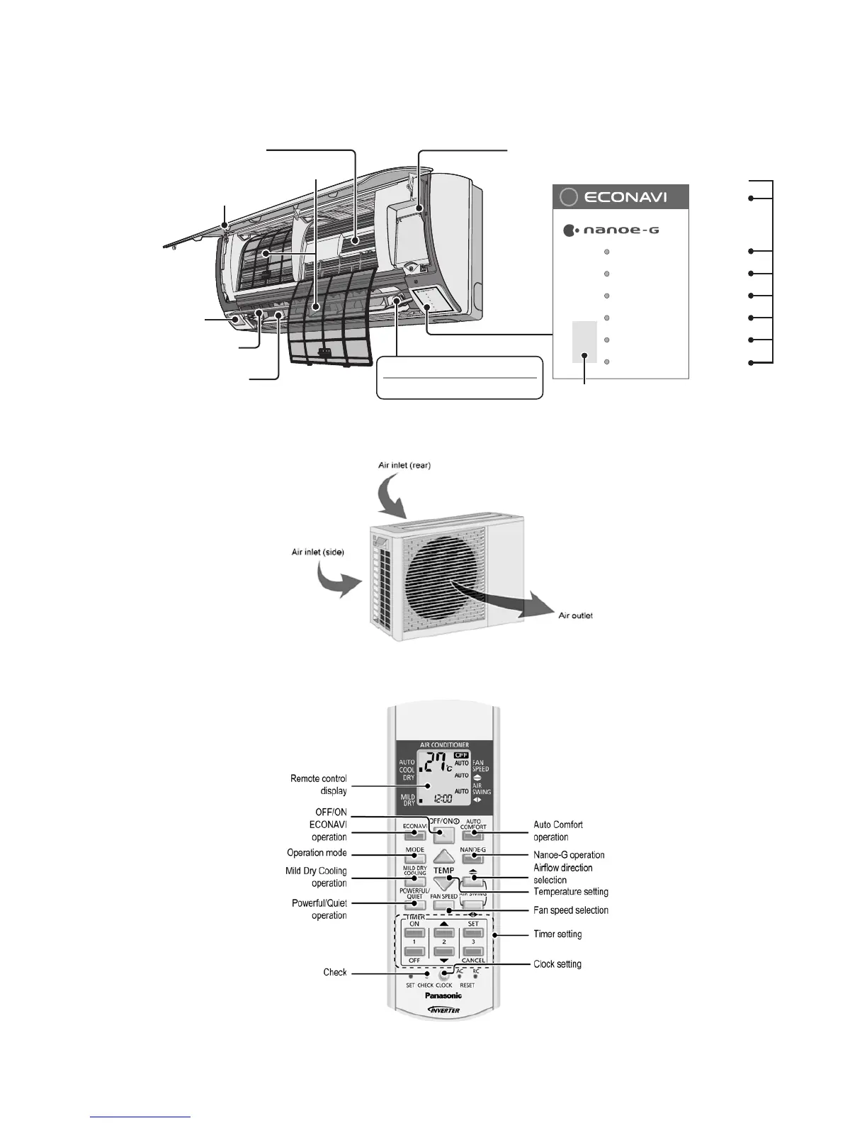 Panasonic CU-S18PKH - 3 Location of Controls and Components; Indoor Unit; Outdoor Unit; Remote Control