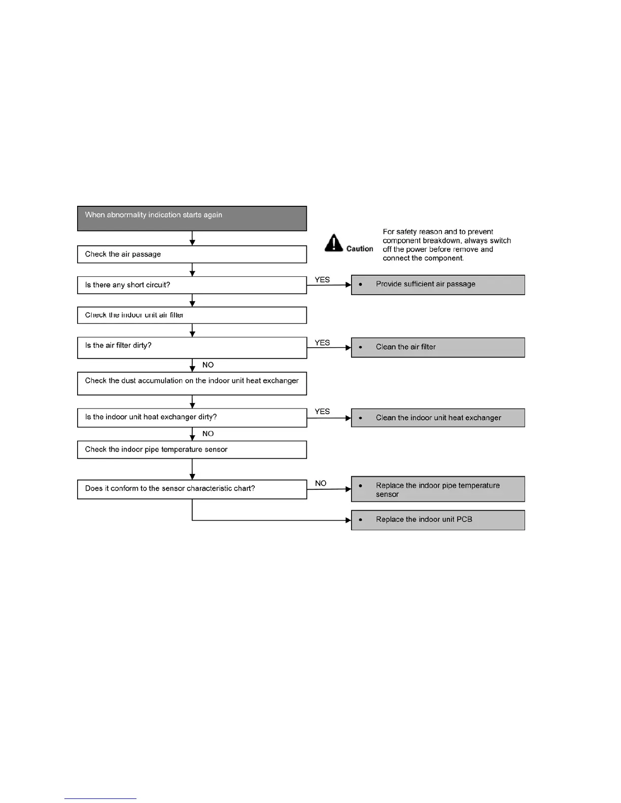 • Detection error due to faulty indoor unit PCB