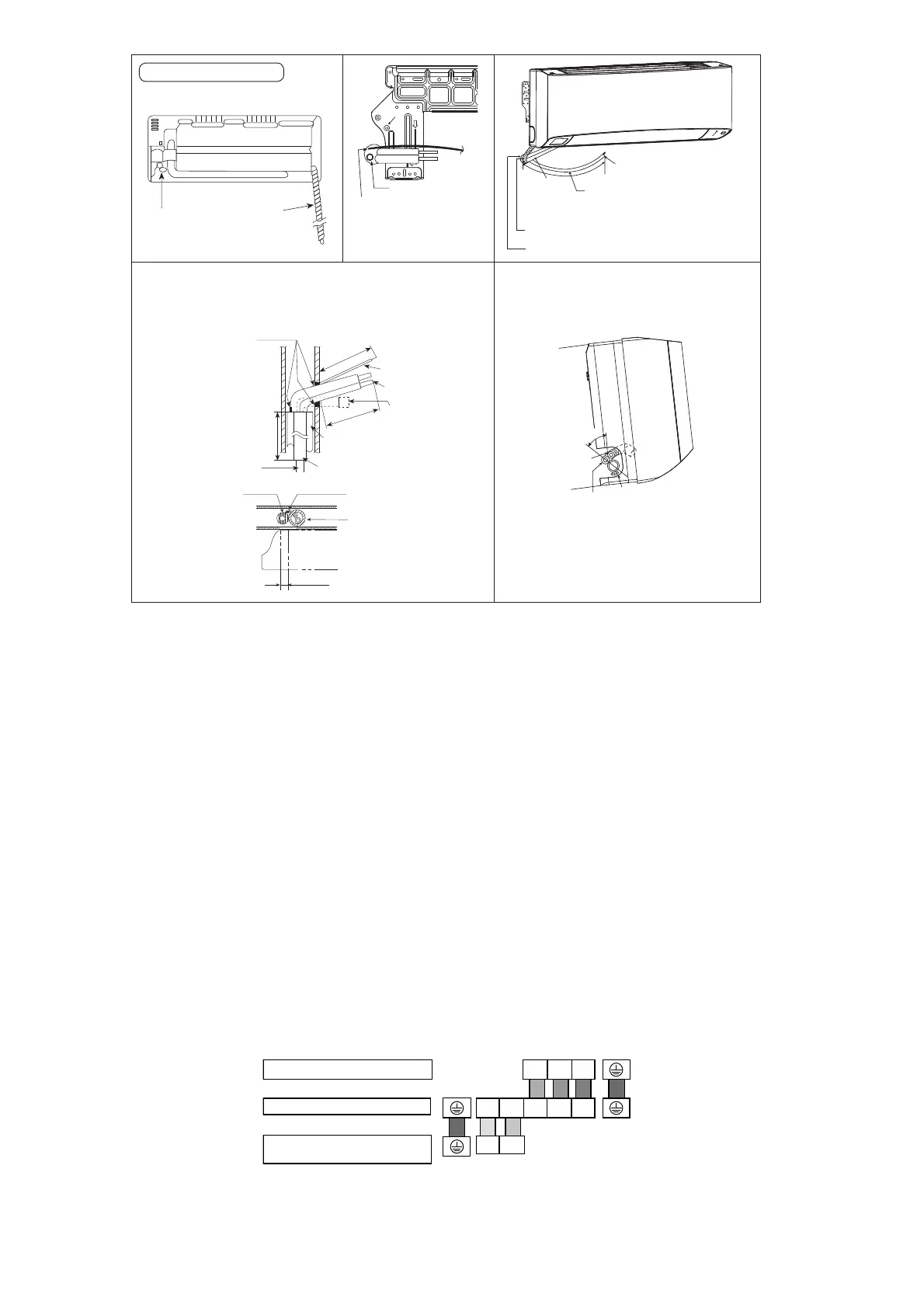 The power supply cord, indoor and outdoor unit connection cable can be connected without removing the front grille.