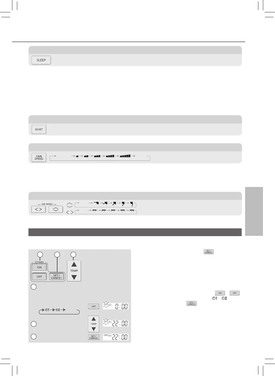 Al pulsar el botón de SLEEP, activará el modo QUIET. En modo SLEEP, se puede seleccionar la velocidad