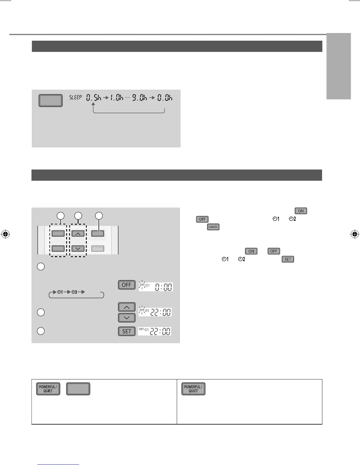 2 sets of ON and OFF timers are available to turn ON or OFF the unit at different preset