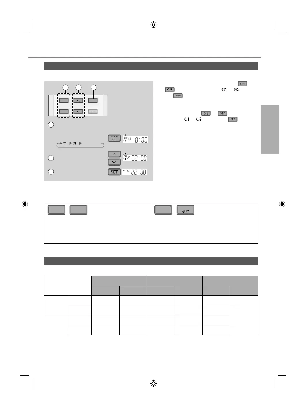 2 sets of ON and OFF timers are available to turn ON or OFF the unit at different preset time.