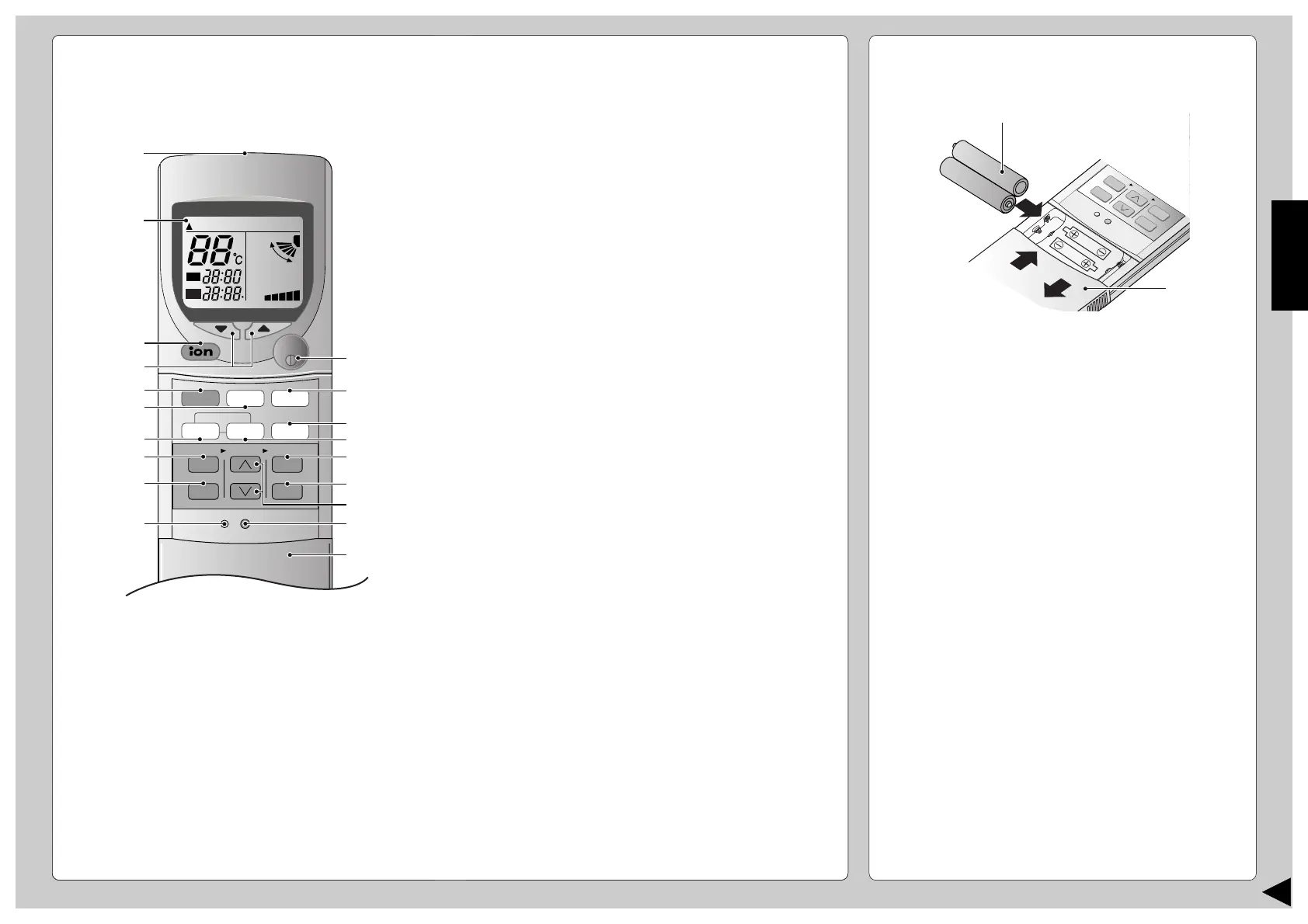 1 Deckel der Fernbedienung ganz hinunterschieben