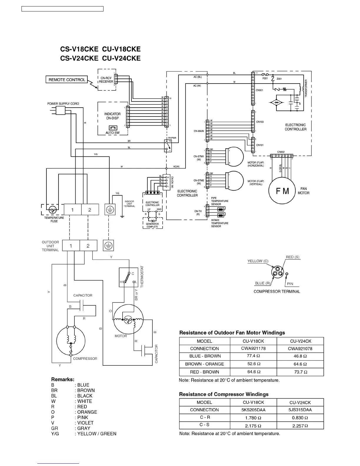 Panasonic CU-V18CKE - Wiring Diagram
