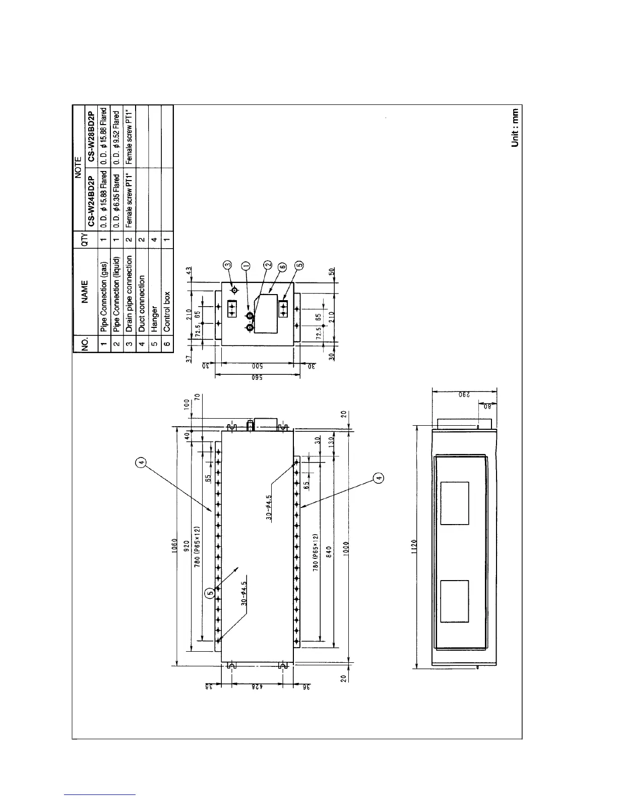 Panasonic CU-V28BBP5 - Technical Drawing