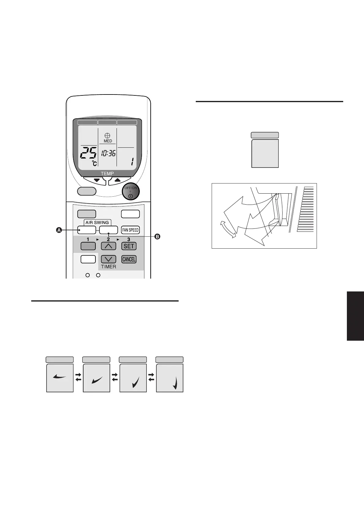 La direzione del flusso d’aria può essere impostata sul valore desiderato utilizzando il comando a distanza.