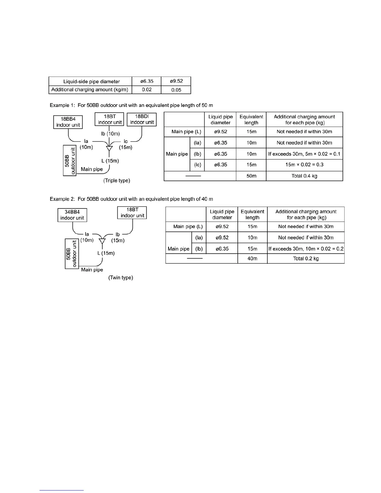 and pipe lengths from the following table in order to charge the system.