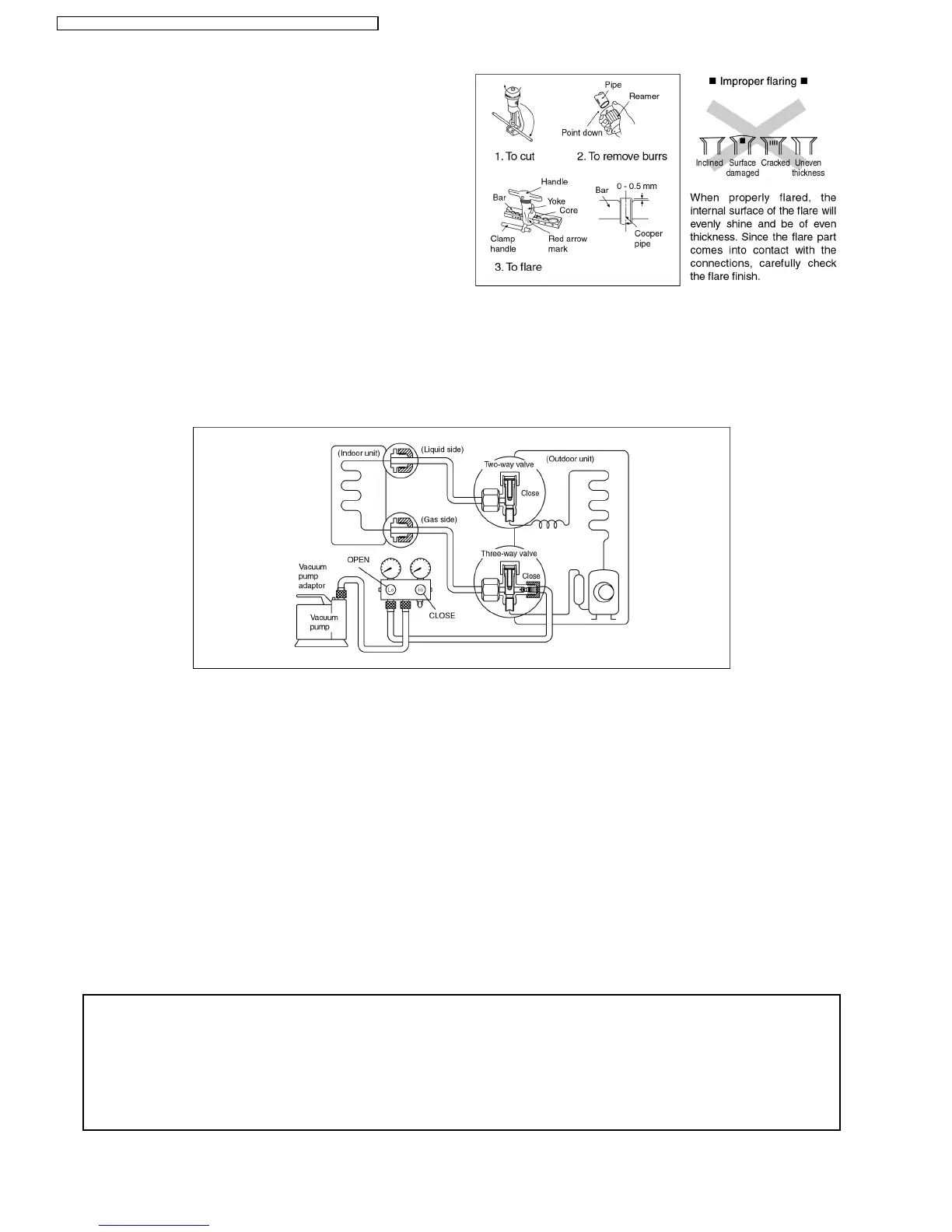 WHEN INSTALLING AN AIR CONDITIONER, BE SURE TO EVACUATE THE AIR INSIDE THE INDOOR UNIT AND PIPES in the