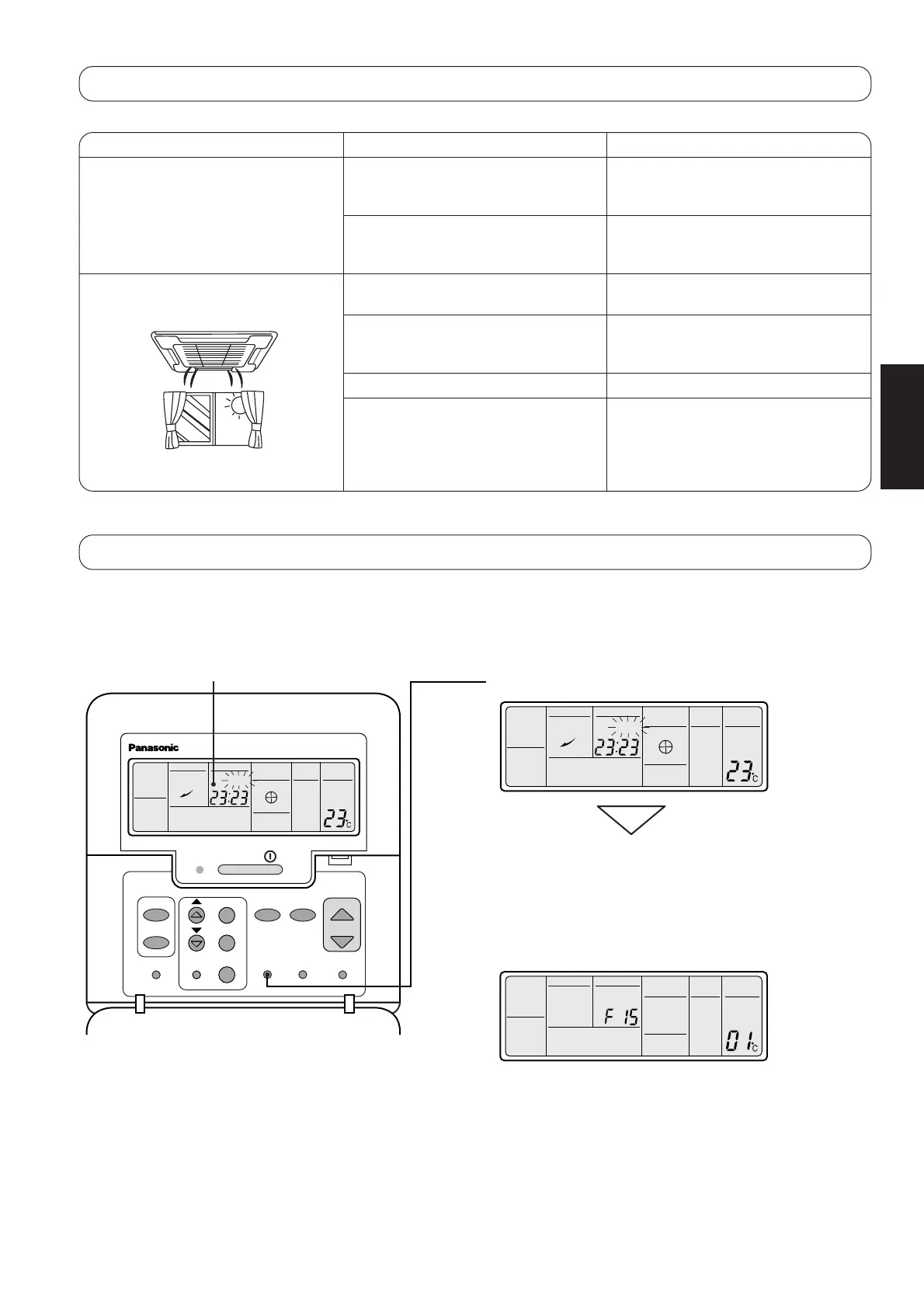 Schalten Sie das Innengerät aus und überprüfen Sie die Betriebsbedingungen. Schalten Sie das Gerät nach drei