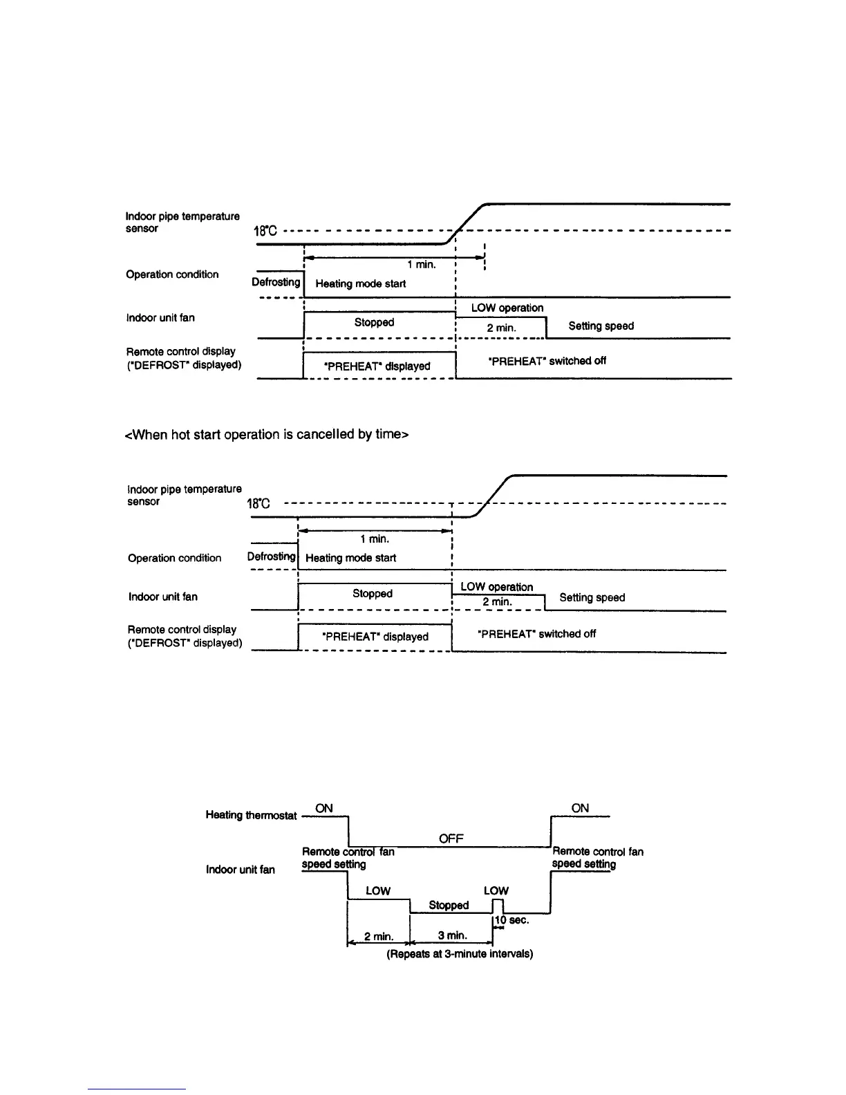 Hot starting is cancelled when the temperature detected by the indoor unit pipe temperature sensor is 18°C
