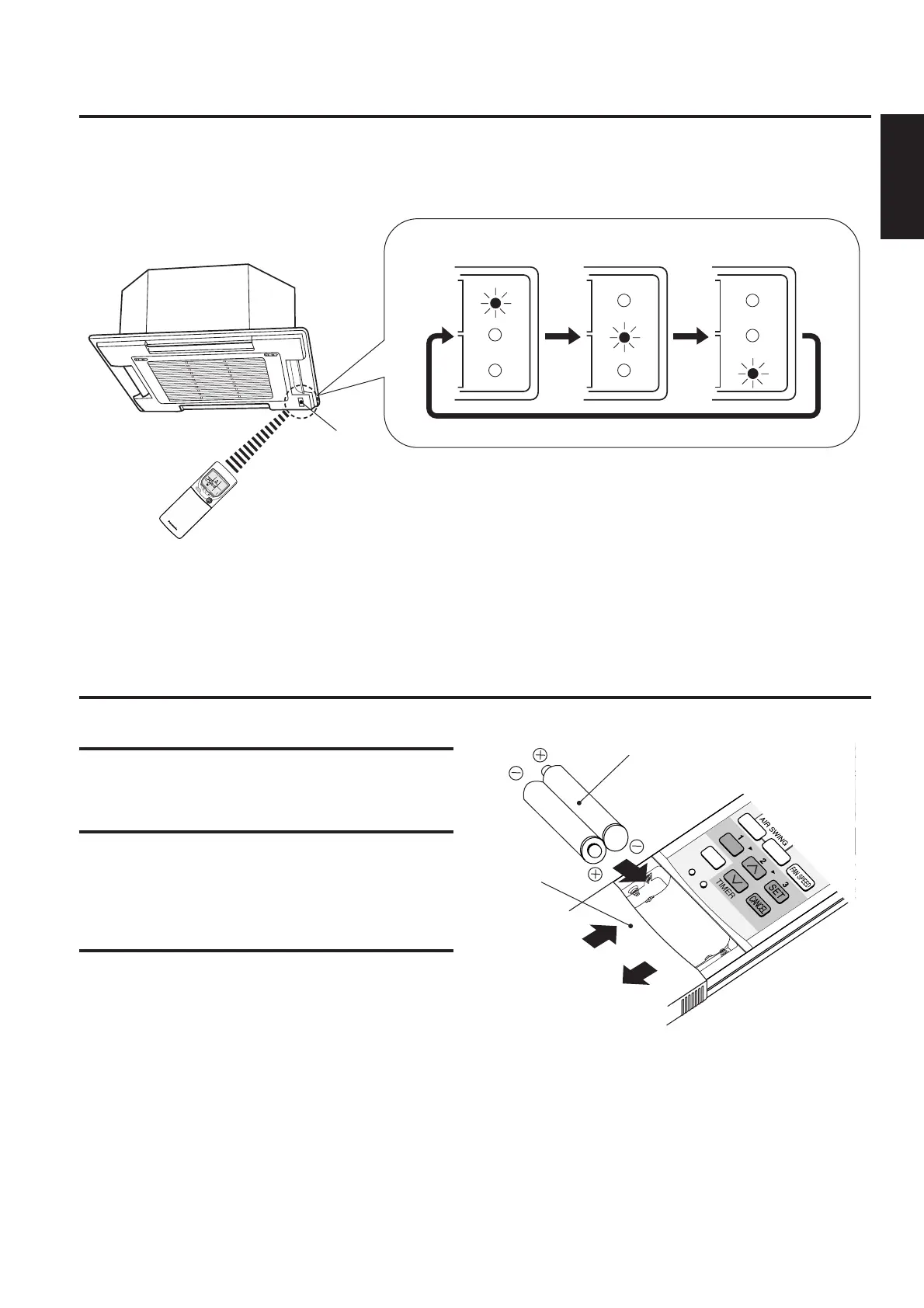 • If the remote control cannot operate the unit properly or if the remote control display is weak, replace the batteries and then