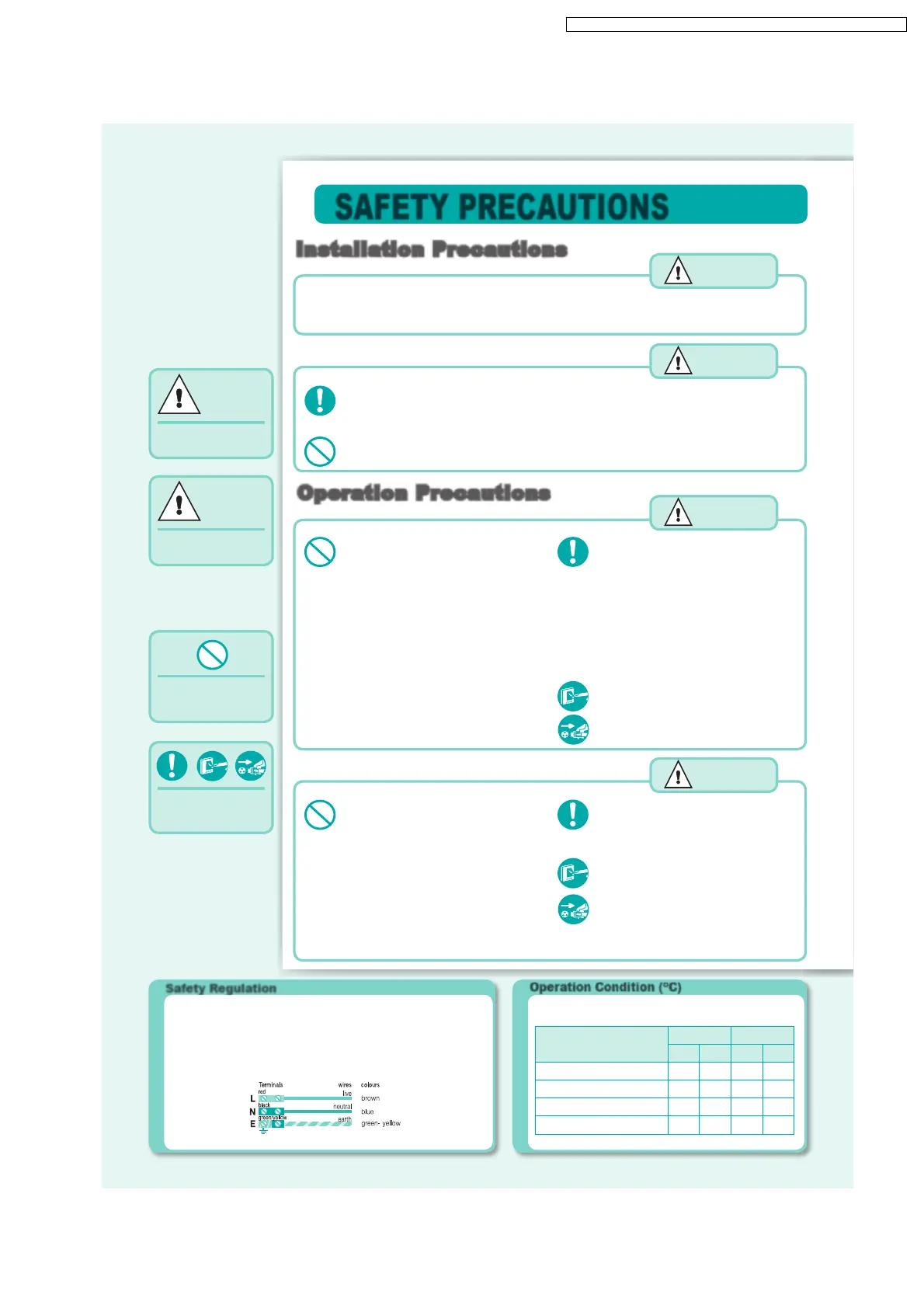 • Current leakage protection equipment must be installed. Otherwise, electric shock or fi re may