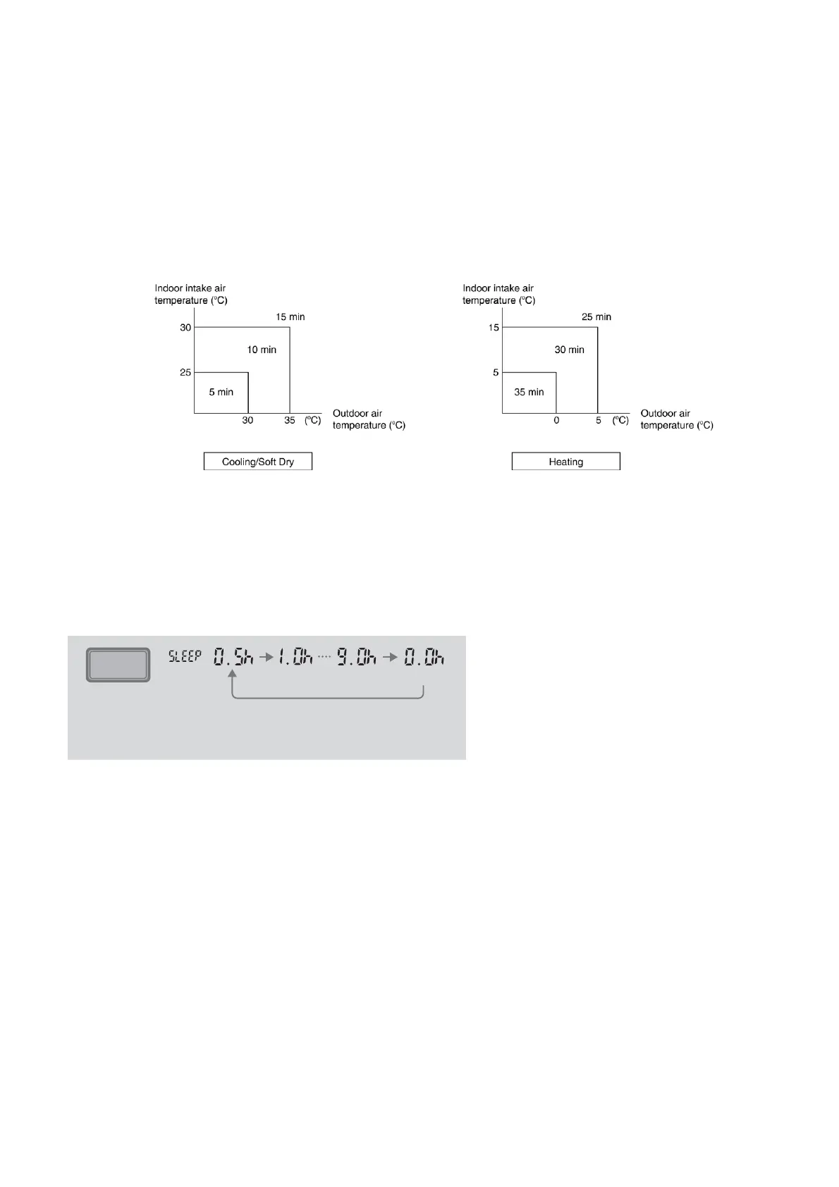 60 minutes before the set time, indoor (at fan speed of Lo-) and outdoor fan motor start operate for 30 seconds to