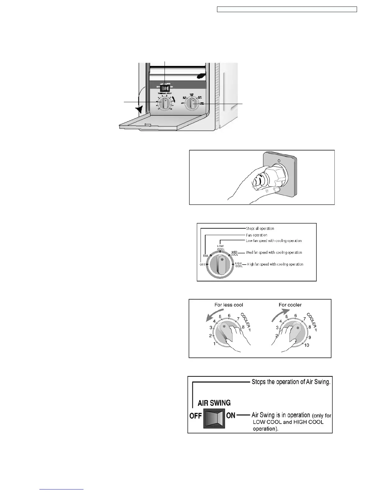 To obtain a fixed airflow direction, set the Air Swing Switch