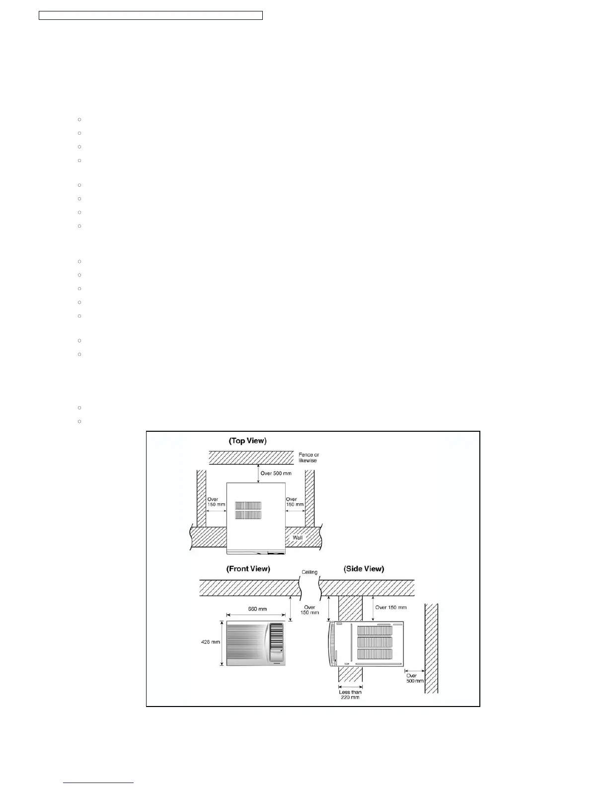 The air conditioner should be installed in a dry place where there are no draughts.
