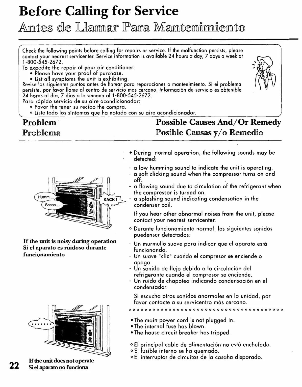 Panasonic CW-C200NU - Antes de Llamar para Mantenimiento; Before Calling for Service