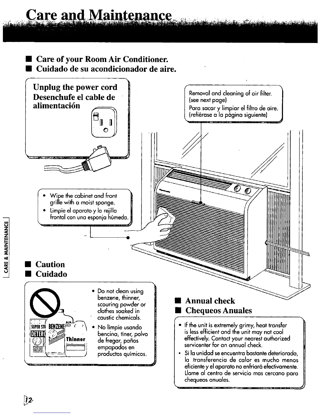 Panasonic CW-C50RU - Care and Maintenance; Air Filter Removal and Cleaning; Annual Check