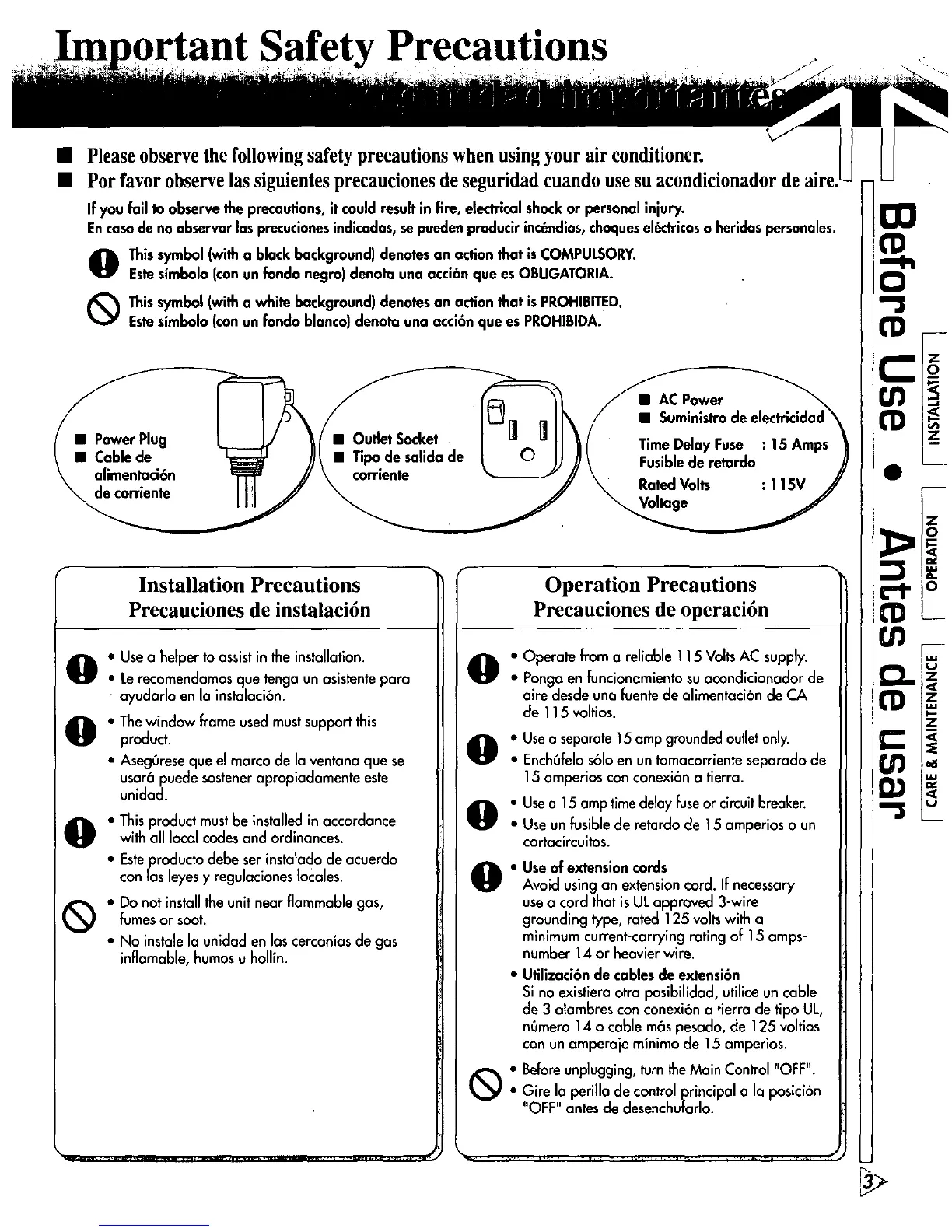 Panasonic CW-C50RU - Important Safety Precautions; Installation Precautions; Operation Precautions