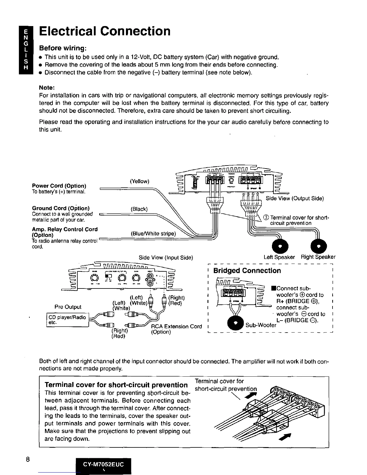 Panasonic CY-M7052 - Electrical Connection; Before Wiring; Terminal Cover for Short-Circuit Prevention