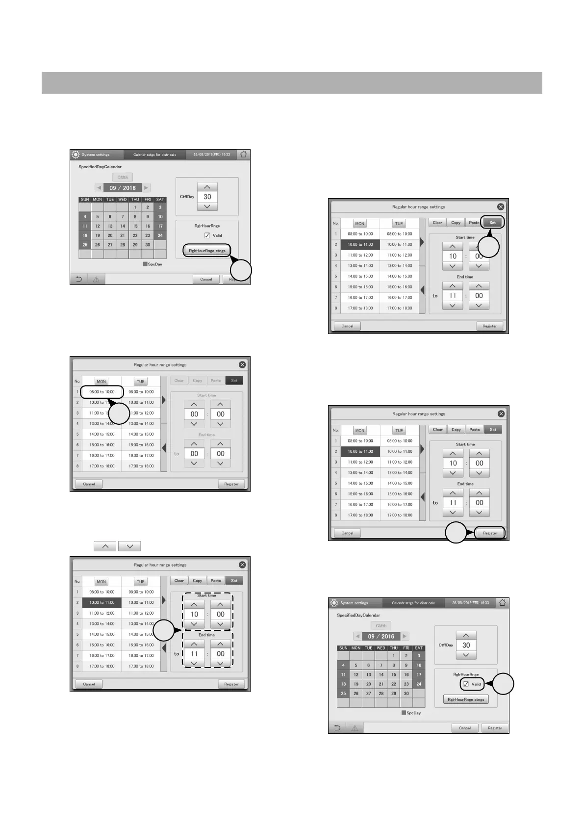z The “Regular hour range settings” dialogue is displayed.