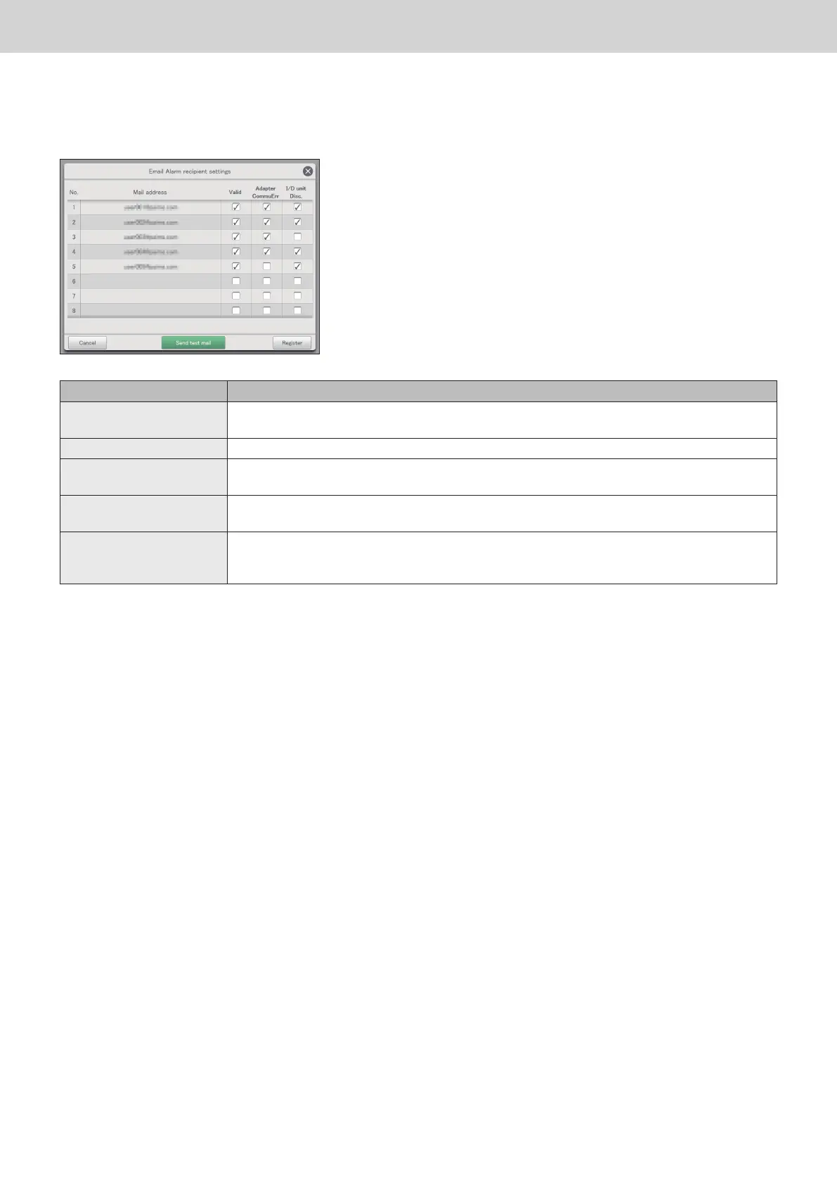 Adaptor CommuErr Users with a check mark in this column will be sent alarm emails when there is a communica-