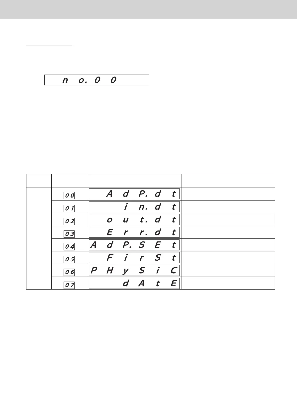 If an item (00 - 07) is selected and the SET key is pressed, the screen will shift to the detailed display screen