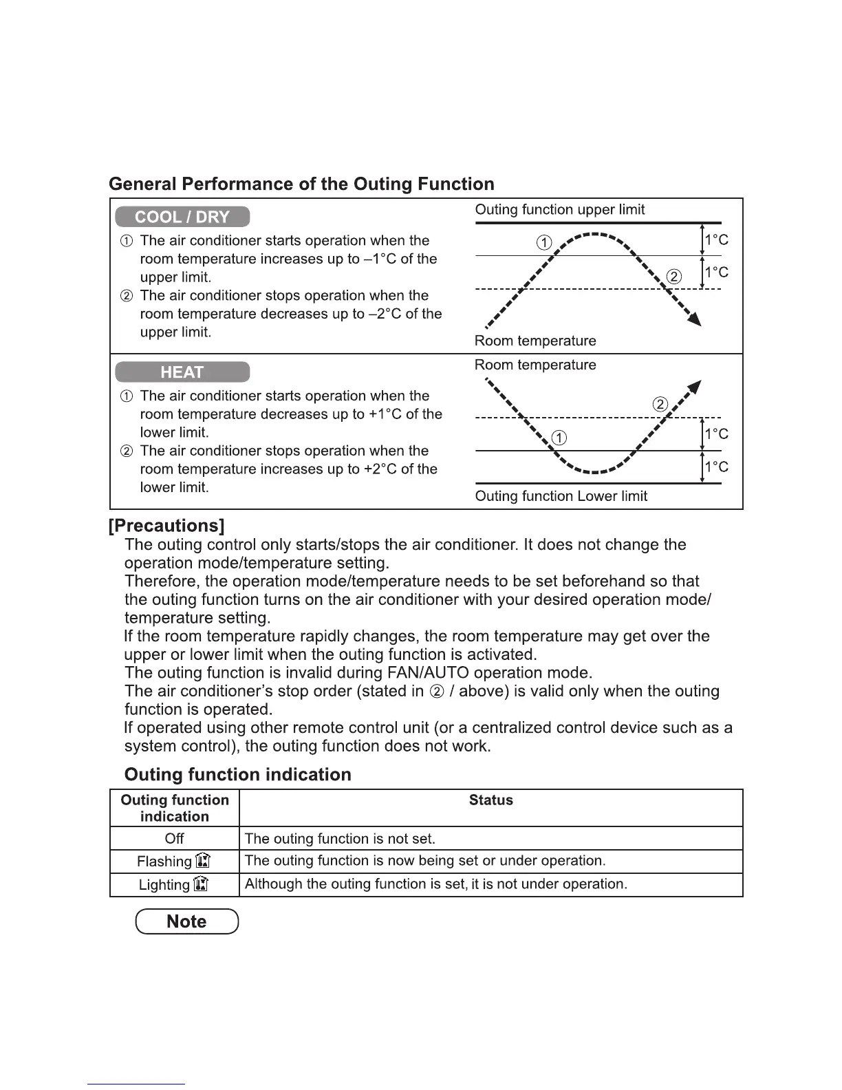 more than 24 hours during the outing function operation by electricity. It reverts from