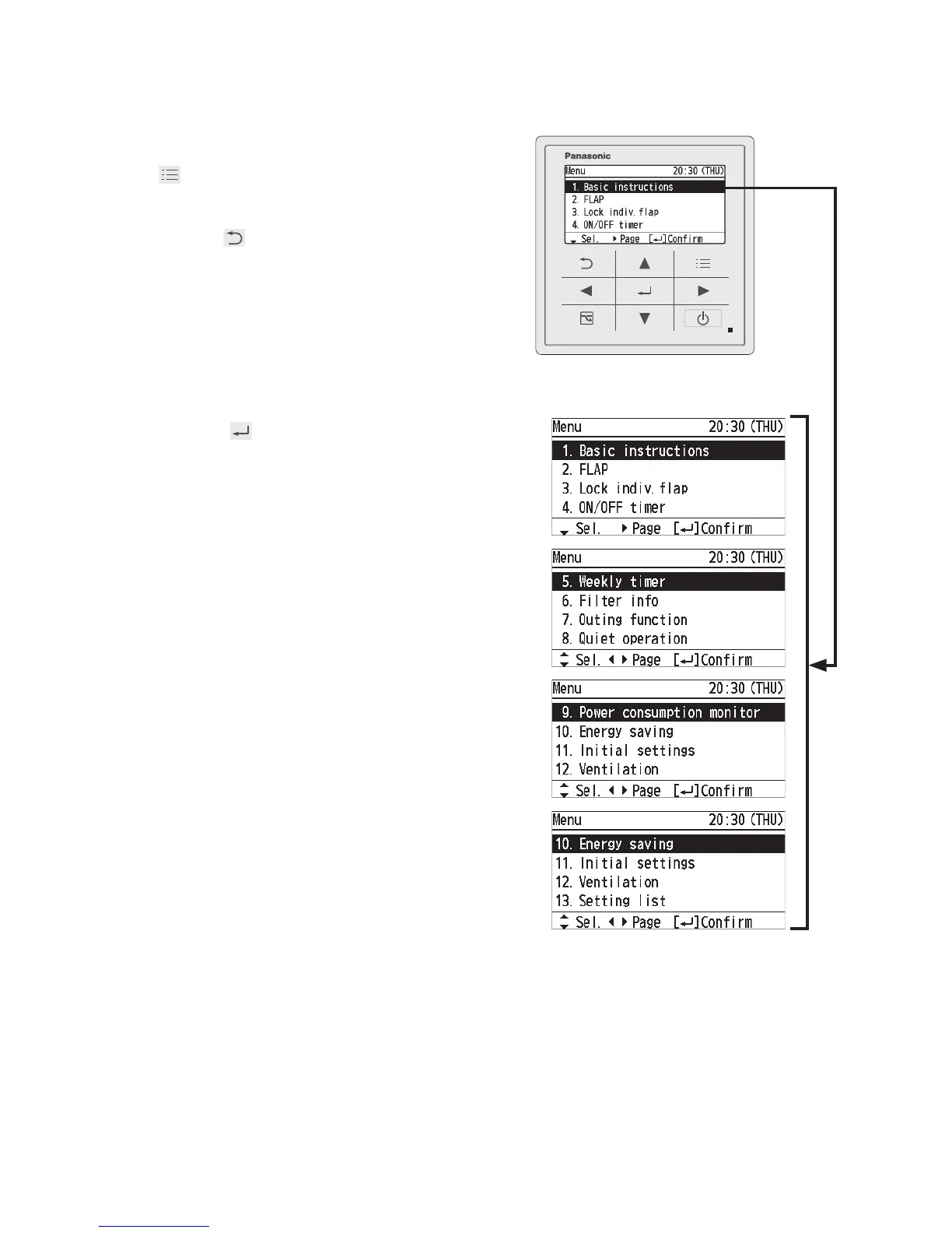 Selectable menus (1 to 13)